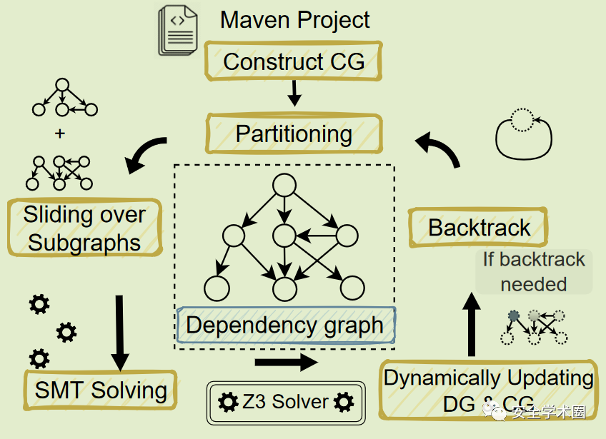 使用SMT求解后,子图中的每个顶点都分配一个选定的版本,CG中升级的库将相应更新,但所选版本可能会被下一次优化推翻,因此所有可选择的候选版本都被保存并提供给下一个优化。