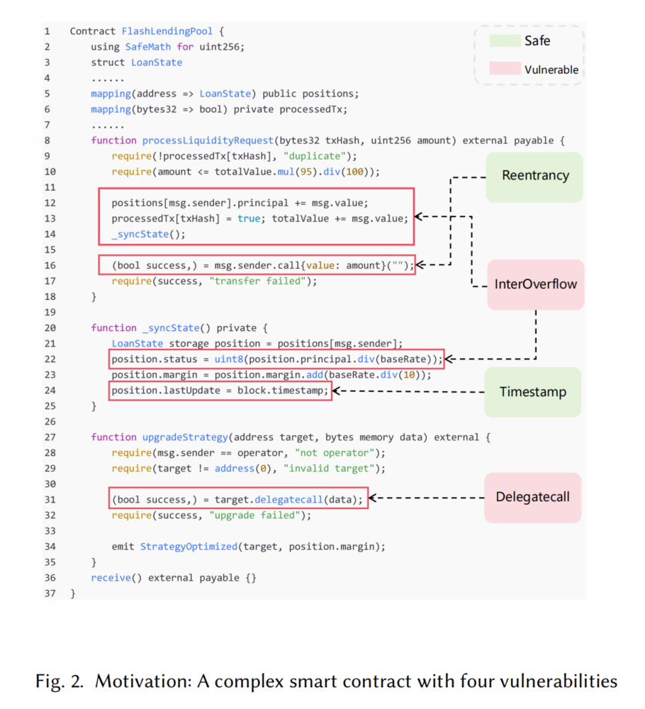 论文简介:智能合约漏洞给区块链系统带来了重大的安全风险,有可能导致严重的经济损失。现有的方法存在一些局限性:(1)基于程序分析的方法严重依赖预定义的模式,缺乏对新漏洞类型的灵活性和适应性;(2)基于深度学习的方法对其检测结果缺乏解释;(3)基于大语言模型的方法存在较高的误报率。