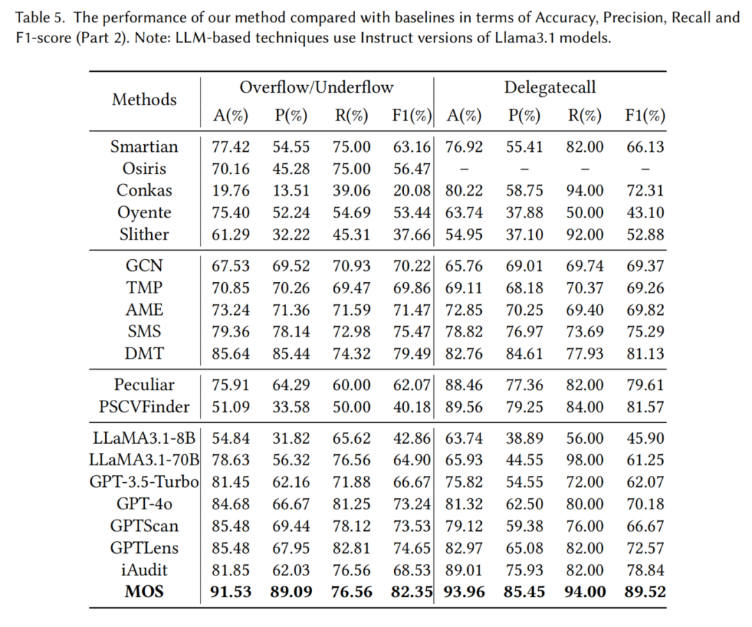 研究者提出了 MOS,这是首个利用大语言模型的专家混合调优来进行智能合约漏洞检测的框架。研究者的方法将漏洞感知的专家路由与专门的专家网络相结合,在四种主要的漏洞类型检测上达到了当前最先进的性能水平,同时还能提供可靠的解释。