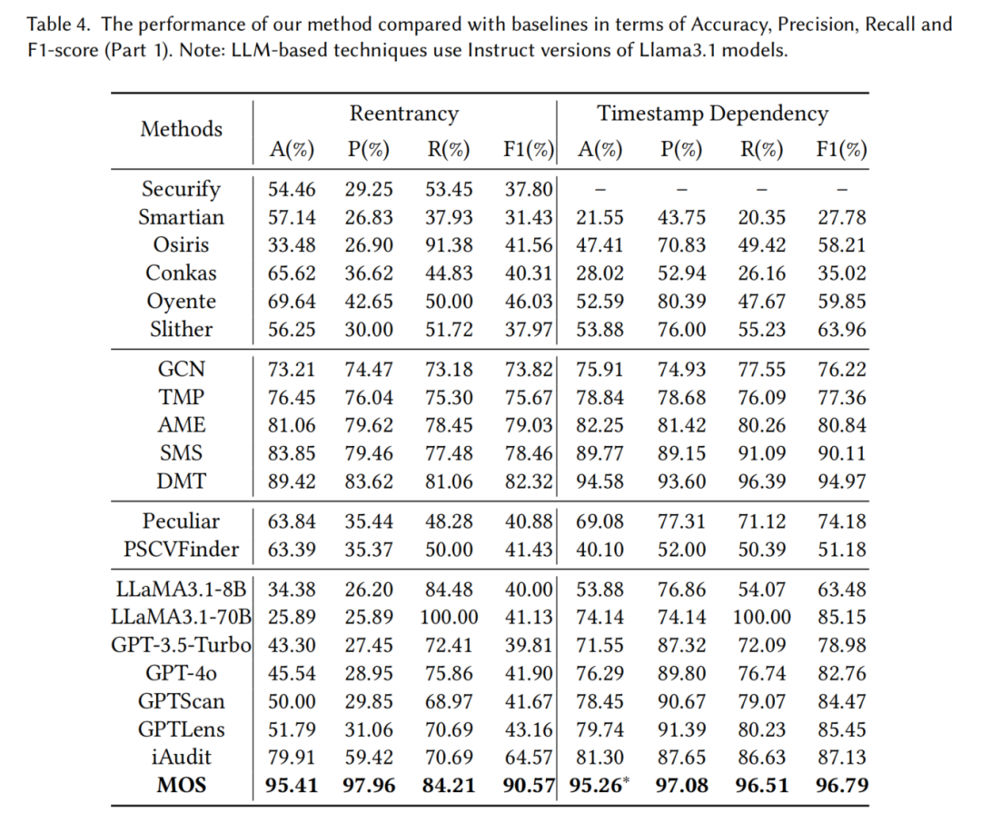 然而,现有的检测手段仍难以满足实际需求。传统的程序分析工具多依赖规则匹配和符号执行,难以覆盖复杂和新型漏洞,且误报率和漏报率较高;而基于深度学习的方法虽然在检测能力上有所提升,却普遍缺乏对漏洞原因和定位的解释能力,无法有效协助开发者修复问题;大语言模型(LLM)虽然具备强大的语言理解能力,但在实际应用中仍存在误判多、泛化弱、解释模糊等问题。因此,亟需一种兼具准确性、泛化能力与可解释性的智能合约漏洞检测新范式。MOS框架正是在这样的背景下应运而生。