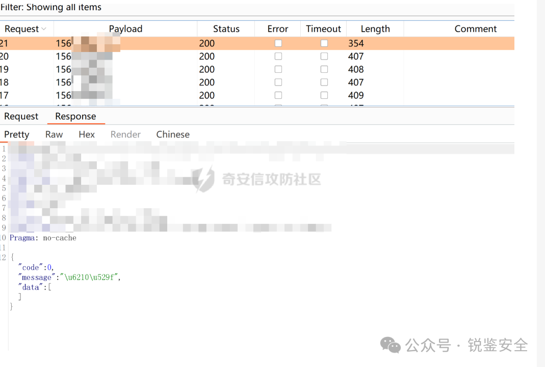 不停点击repeter或者放到intruder里面,就可以实现一个手机号接收到多条短信