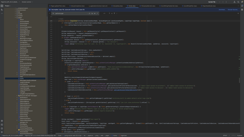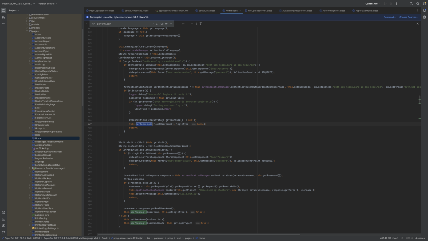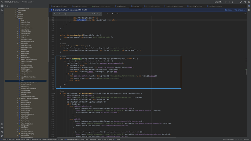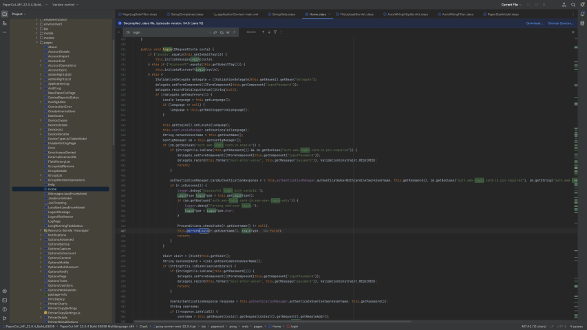 反编译 pcng-server-web-22.0.4.jar,可以看到登陆时验证方法位于