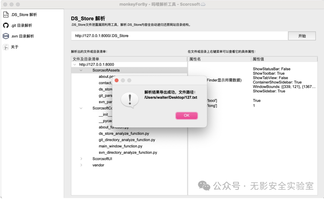 通过解析 .DS_Store 文件,可以还原出网站的目录结构,例如:当前目录下有哪些文件、有哪些子目录。