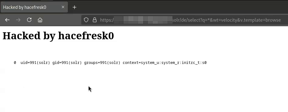 文件 “hacefresk0-config.xml” 是基于 Solr 8.11 默认的 “solrconfig.xml” 进行修改后的副本。由于 “details” 命令的服务器响应中显示了 leader URL,我添加了一个自定义的 URL 来验证新的配置是否能够成功加载到服务器中。我使用的 leader URL 就是当前的 URL,它对应公司的一个内部服务器,但明确指定了 “443” 端口:
