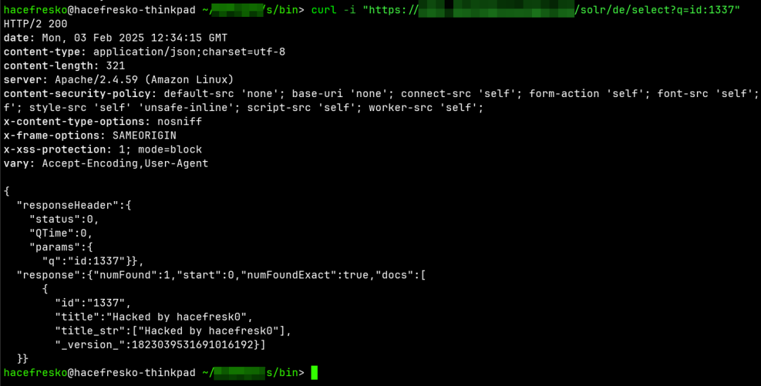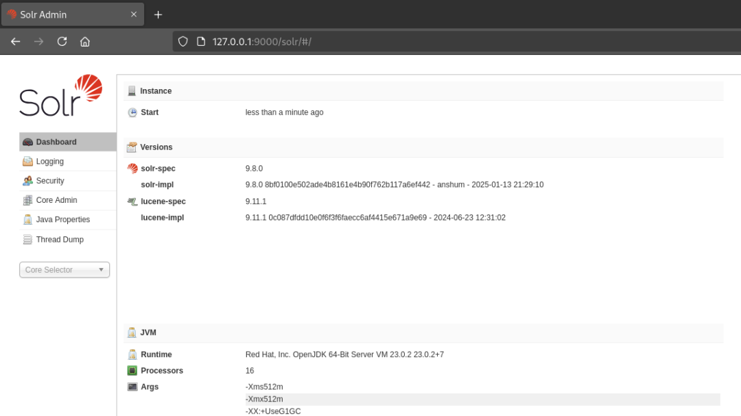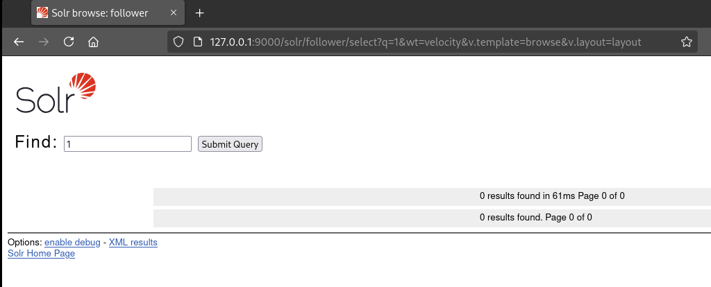 我重新开始工作,并尝试在目标服务器上触发一些错误,看看是否能泄露 Solr 版本,直到我找到了它!它使用的是 8.11 版本(我不记得具体是如何触发错误的,因为我只记录了版本号,但可能是复制请求处理器中的某些内容)。我立即从 Solr 官网 下载了 Solr 8.11 的二进制版本,并开始重建相同的测试环境。