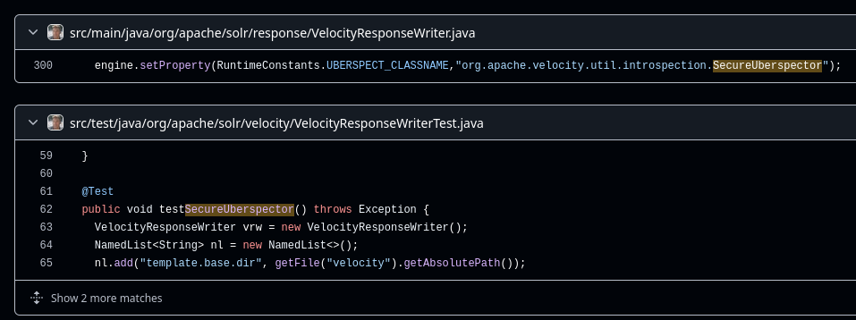 某天晚上,在重新查看我的笔记时,我想也许能在Velocity 插件 github 仓库中找到一些答案,因为它也包含了 Velocity .jar 文件的 Java 代码。我搜索了字符串”SecureUberspector”,令我惊讶的是,有两个结果: