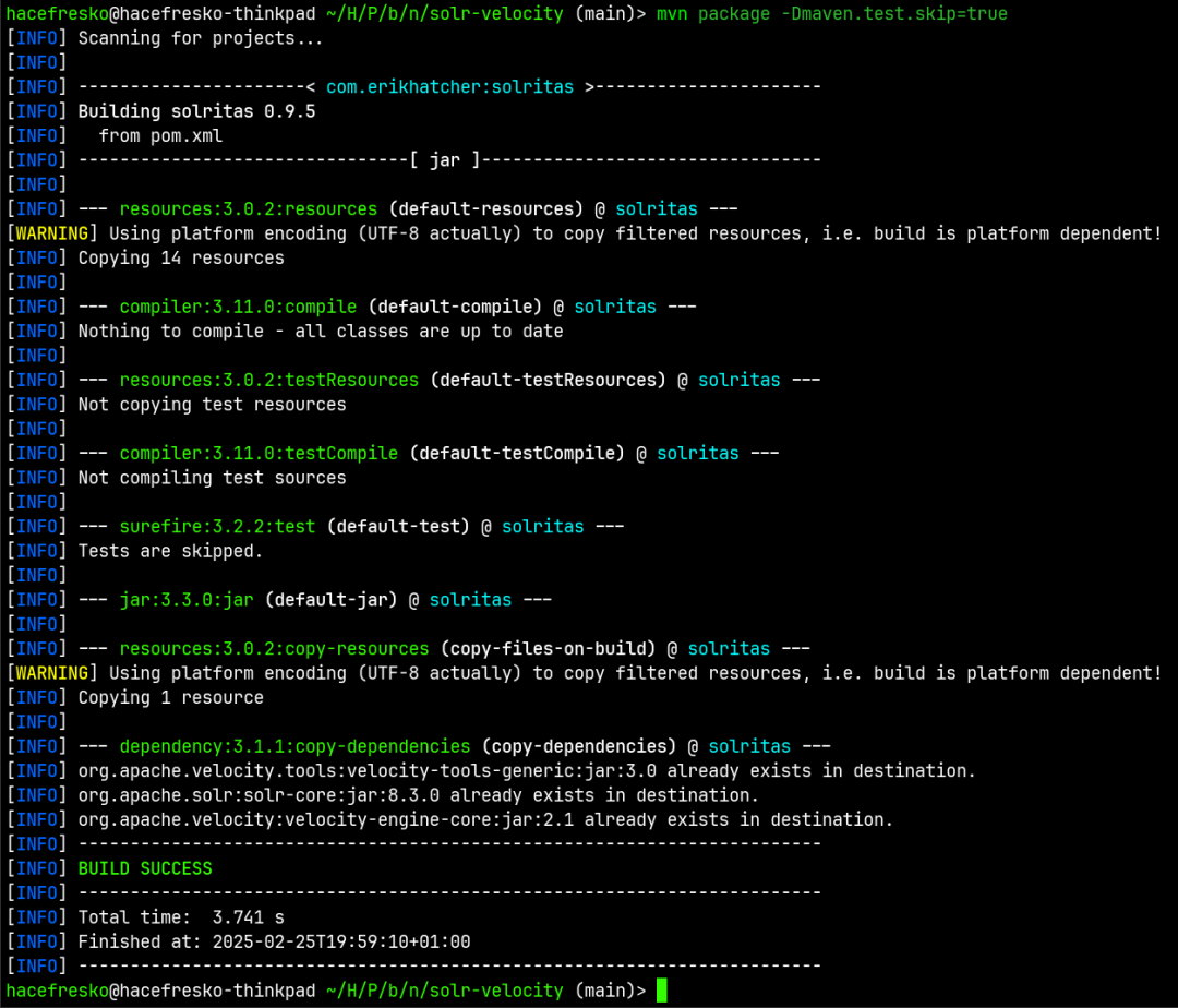嗯,这很令人兴奋。也许我可以删除这些行并重新编译.jar 文件,这样生成的 Velocity 引擎就没有限制了。经过一些尝试和错误,并修复了项目”pom.xml”文件中的一个损坏的依赖项后,我成功重新编译了.jar 文件: