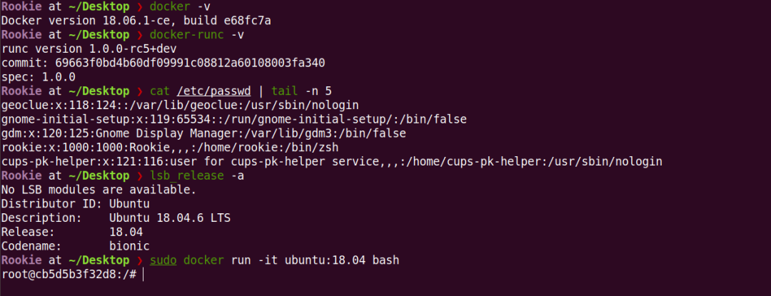 sudo apt updatesudo apt install apt-transport-https ca-certificates curl gnupg-agent software-properties-commonsudo curl -fsSL https://download.docker.com/linux/ubuntu/gpg | sudo apt-key add -sudo add-apt-repository "deb [arch=amd64] https://download.docker.com/linux/ubuntu $(lsb_release -cs) stable"sudo apt updatesudo apt-cache madison docker-cesudo apt install docker-ce=18.06.1~ce~3-0~ubuntu# 启动容器sudo docker run -it ubuntu:18.04 bash