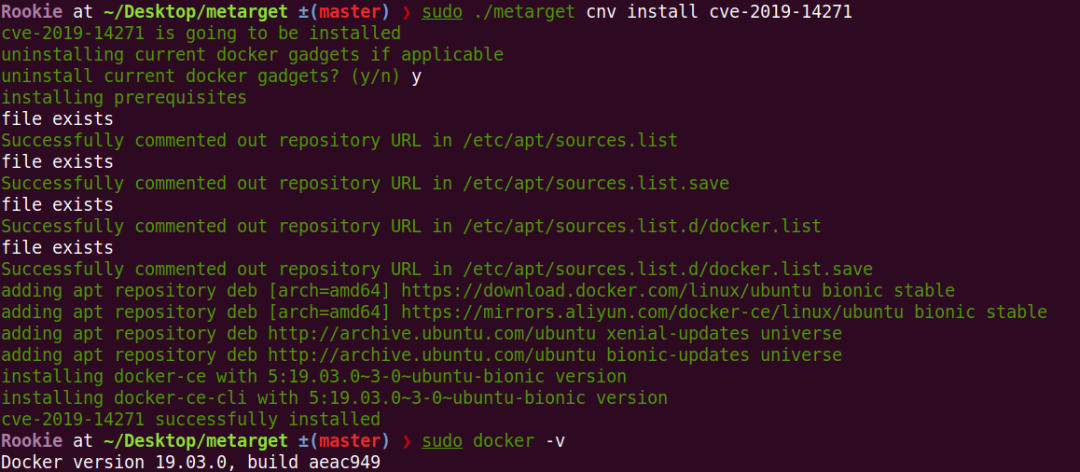sudo apt updatesudo apt install ca-certificates curl software-properties-commonsudo curl -fsSL https://download.docker.com/linux/ubuntu/gpg | apt-key add -sudo add-apt-repository "deb [arch=amd64] https://download.docker.com/linux/ubuntu xenial stable"sudo apt updatesudo apt-cache madison docker-cesudo apt install docker-ce=5:19.03.6~3-0~ubuntu-xenial docker-ce-cli=5:19.03.6~3-0~ubuntu-xenial containerd.io=1.2.4-1# 启动容器sudo docker run -it --net=host ubuntu:18.04 bash
