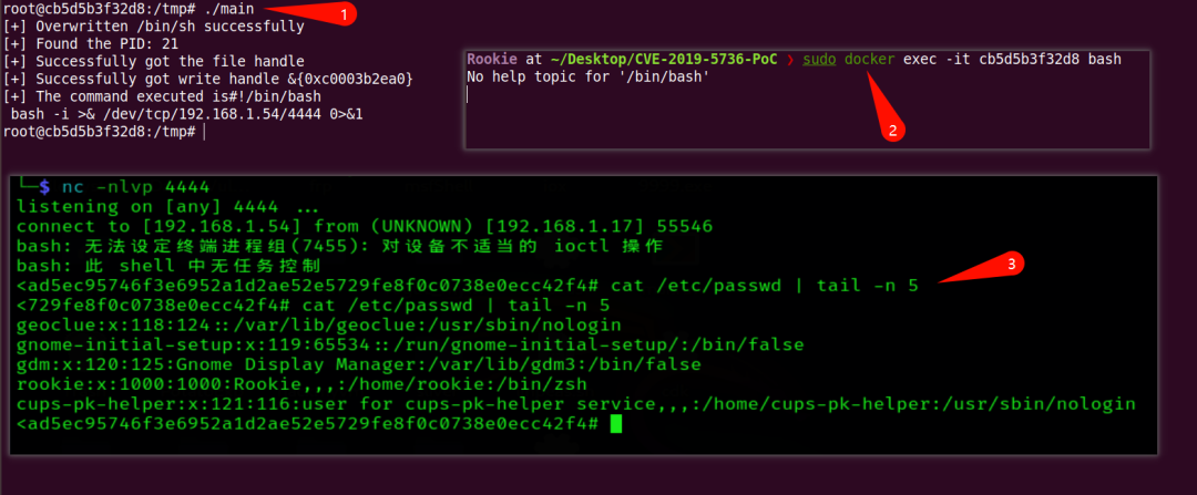 程序从而执行反弹 Shell 命令,实现容器逃逸。