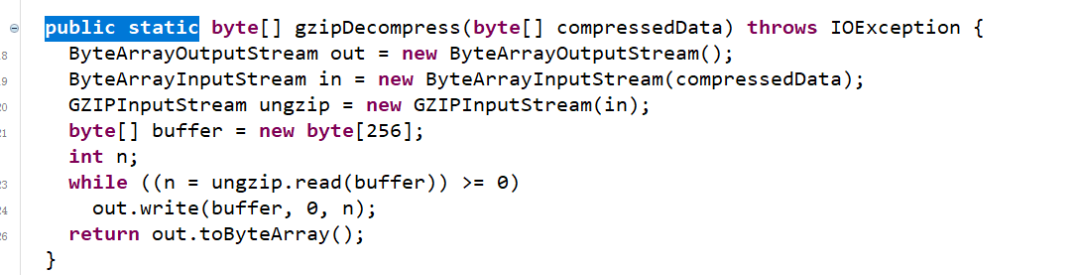 于是我看了一下JMG生成的注入器,里面存在两个public static的方法,一个是gzipDecompress: