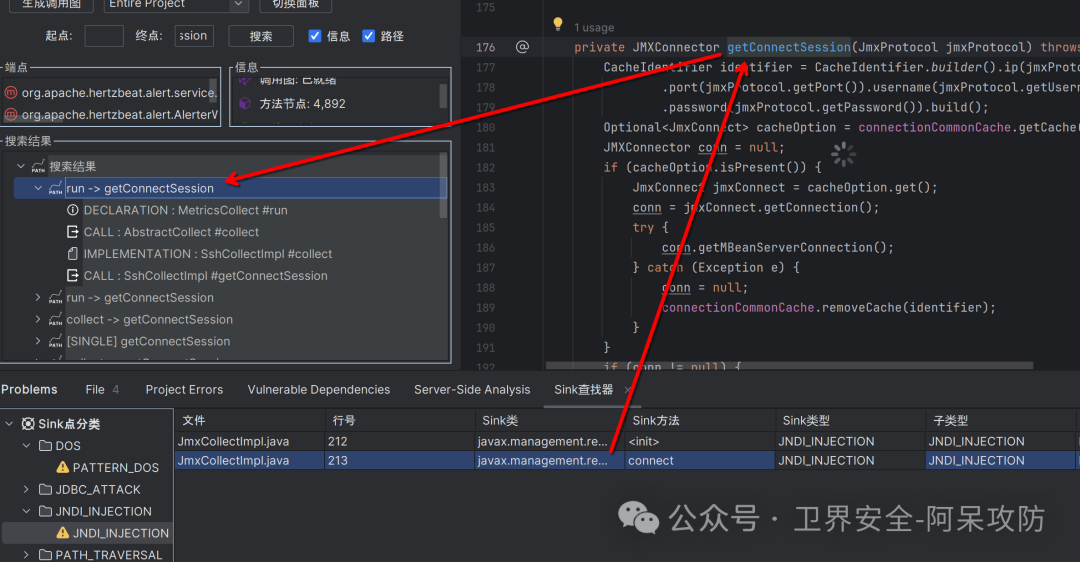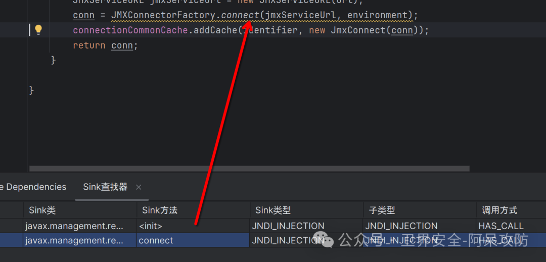 初始化之后,通过 Sink 查找我们找到了一个危险的JNDI