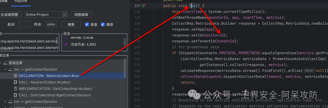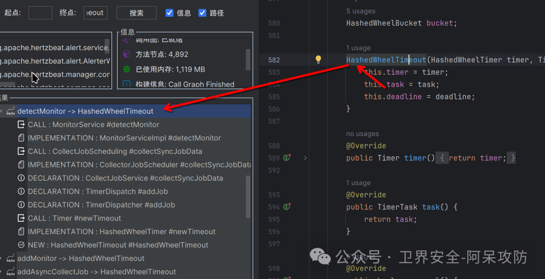 现在你就可以从搜索结果中看到这个方法的调用链了,我们展开调用链进行查看: