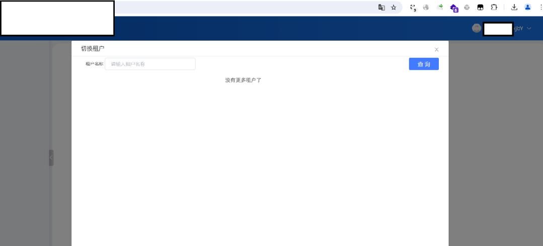 现有功能点就是对站点当前所有可见的功能进行漏洞测试,可以看到这个站点首页没有任何功能,但右上角有一个切换租户的功能,点击之后如下