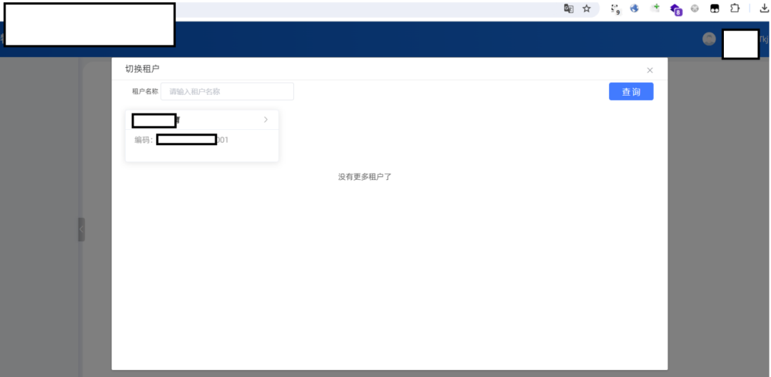 可以看到这里被我们改出来了一个租户,由于这里的功能点是切换租户,所以我们尝试点击并切换到这个租户中