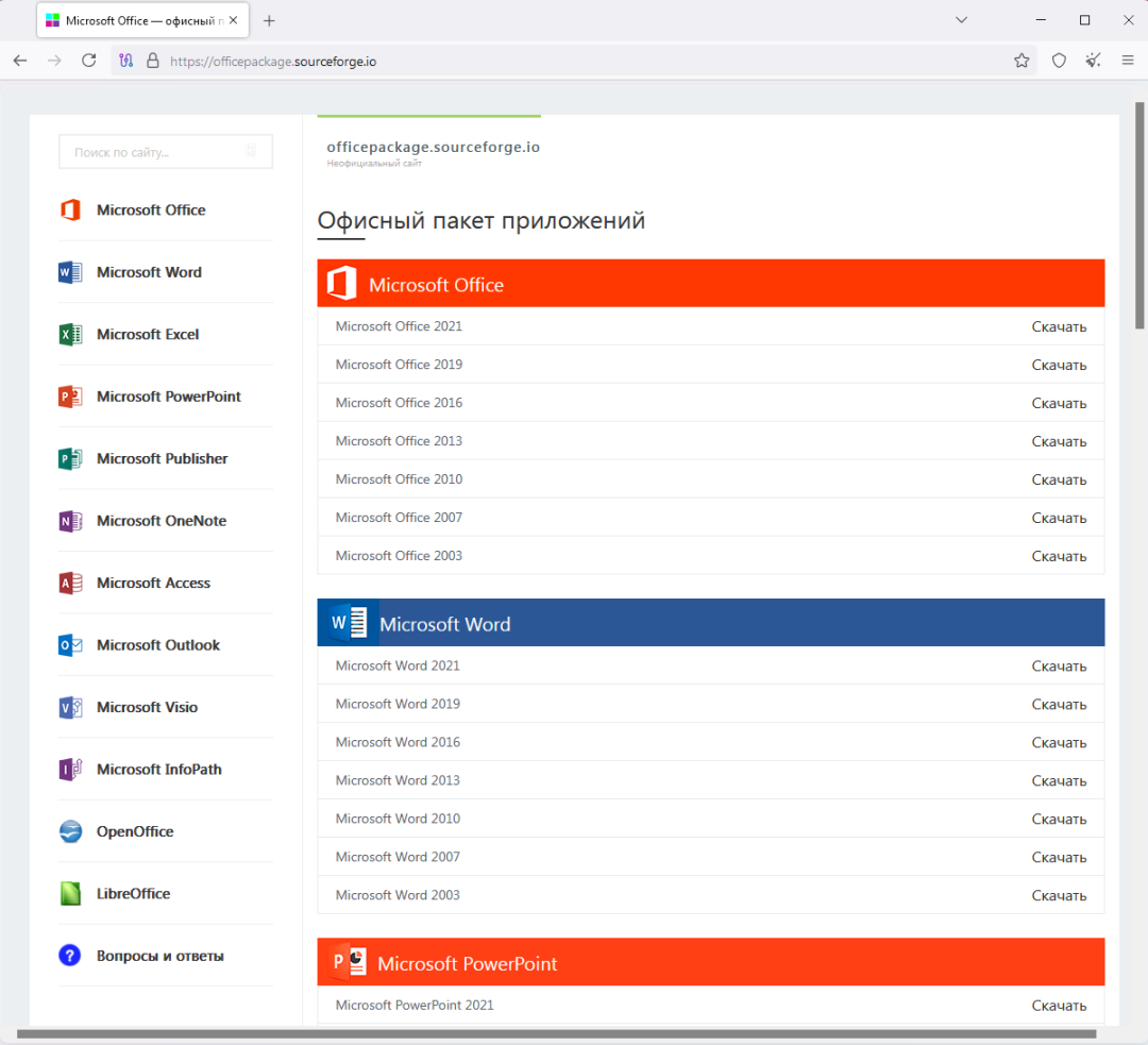 然而,当用户在谷歌search(和其他引擎)上搜索office插件时,他们得到的结果指向“officpackage .sourceforge”。由SourceForge提供给项目所有者的单独的web托管功能提供支持。