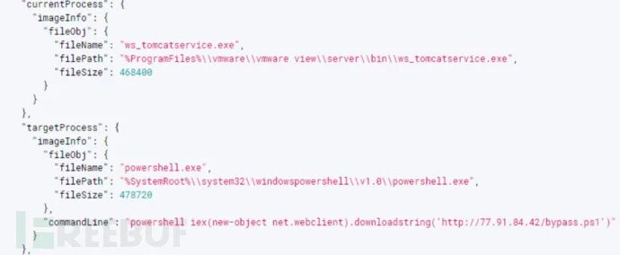 没有完整的网络数据包,但从 VMware Horizon 的 ws_tomcatservice.exe 进程执行 PowerShell 命令与 8220 团伙常用的攻击方式来看,很可能是通过 Log4Shell 漏洞实现的攻击。