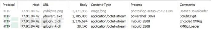 ScrubCrypt 连接到 C&C 服务器并下载其他恶意代码,实际中也发现了安装门罗币矿机的命令。
