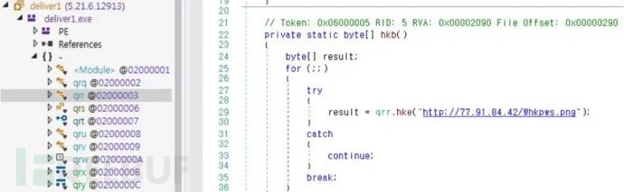 deliver1.exe 是用于下载并执行注入的恶意软件,将 ScrubCrypt 保存在 MSBuild.exe 的内部资源中。该 ScrubCrypt 中包含 2 个 C&C URL 与 4 个端口号(9090、9091、9092 和 8444)。