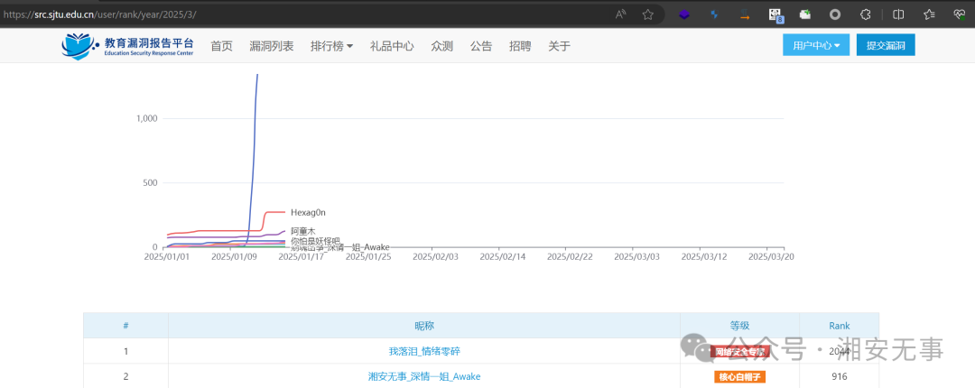 话不多说,看今天edu漏洞列表,直接刷屏,深情哥和带头大哥一姐实力在这,下班就开始交漏洞,交漏洞交了两个晚上交的电脑都要冒烟了。差不多刷了20页edu排行榜,直接干到今年年度第二了,拿下1000rank。请看下面VCR!!!!