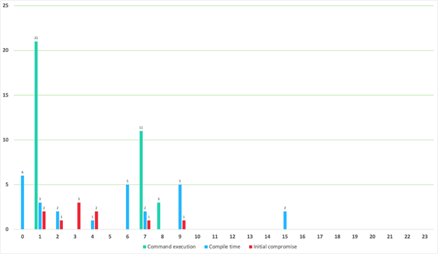 在整个活动中,使用了几个恶意软件样本,我们通过长期持续和专门的研究,设法将其归因于 Lazarus 组织。恶意软件菌株的历史使用及其 TTP 支持了我们的归因,所有这些都已被众多安全解决方案供应商和政府详细记录。此外,我们还分析了 COPPERHEDGE 恶意软件提供的 Windows 命令的执行时间、我们上面描述的所有恶意样本的构建时间戳以及每台主机的初始入侵时间,表明时间范围主要集中在 GMT 00:00 和 09:00 之间。根据我们对各个时区正常工作时间的了解,我们可以推断出该 actor 位于 GMT 09 时区。