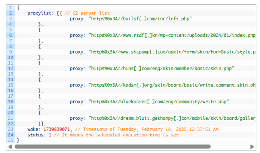 我们确认了域 thek-portal[.]com 在 2020 年之前属于韩国 ISP,并且是一家保险公司的合法域,该保险公司被另一家公司收购。从那时起,该域名一直被停放,其状态在 2025 年 2 月发生了变化,这表明 Lazarus 集团重新注册了该域名,以便在此次作中利用它。