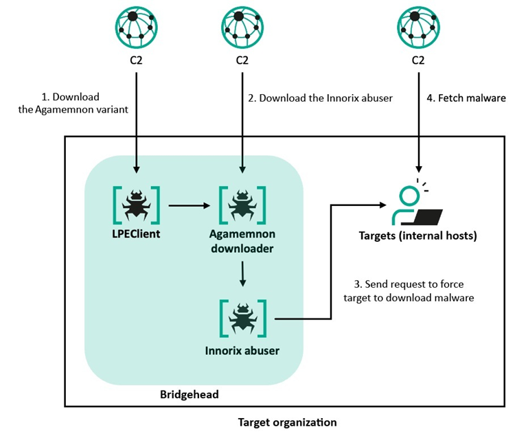 • Innorix Agent 中的单日漏洞也被用于横向移动。