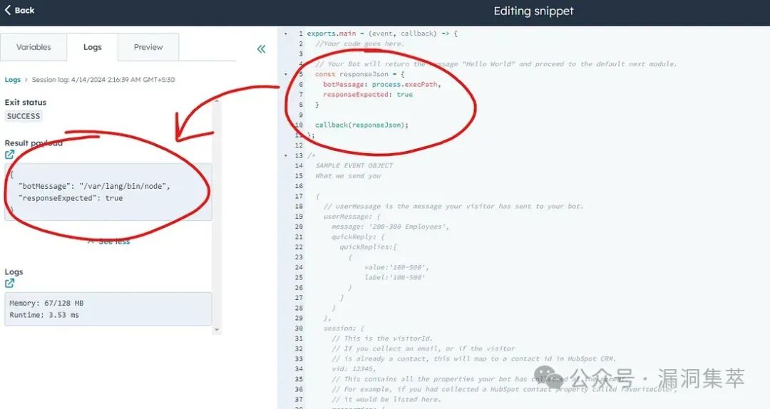 :自定义代码片段直接在Node.js环境中运行,未通过沙箱机制隔离。这使得开发者可以访问Node.js的全局对象(如__dirname