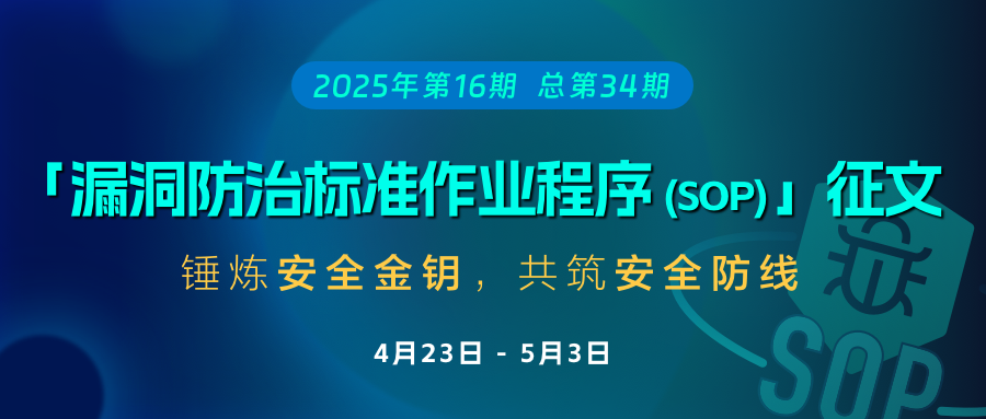 安钥®「漏洞防治标准作业程序(SOP)」征文启示 [2025年第16期,总第34期]