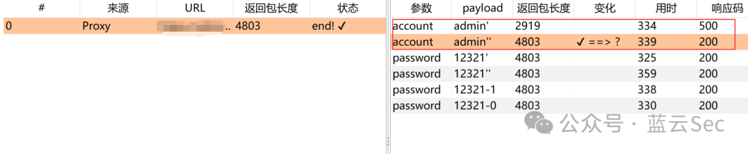 先自己实验一下,account参数添加单引号服务器报错