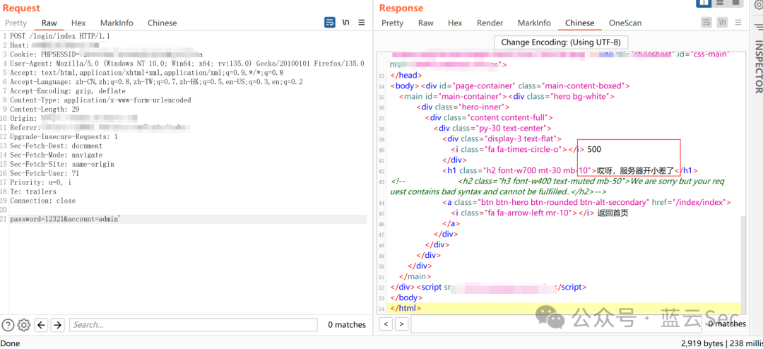这下不好搞了,爆破了一下也没有爆出账号名密码,索性查看了一下插件,发现SQL注入插件有响应,去看看,哎嘿500,200状态码