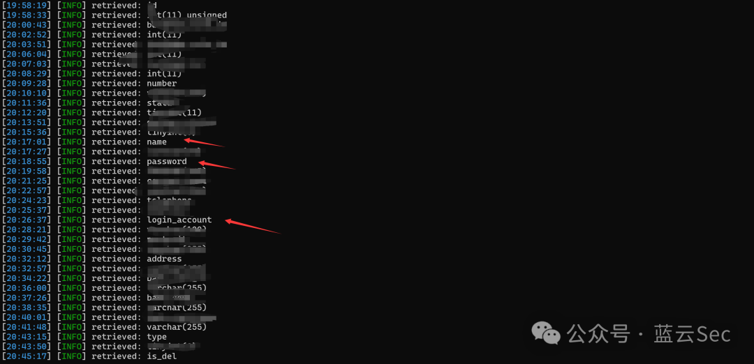 这里在爆破user表中的列,又耗费了我一个小时左右才爆破完,最终拿到三个有用的列,这里有点粗心大意没有刚开始没有看见login_account列