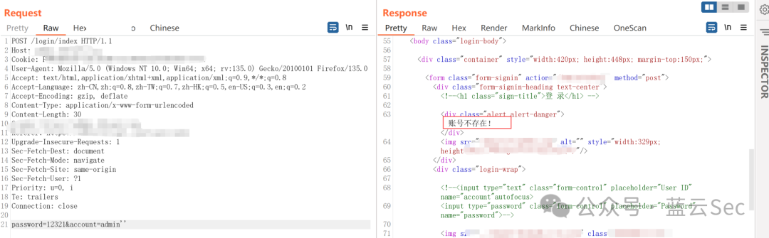 首先开局登录框,任意输入用户名密码admin:123456,不行,提示账号不存在