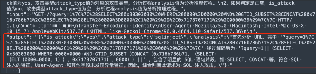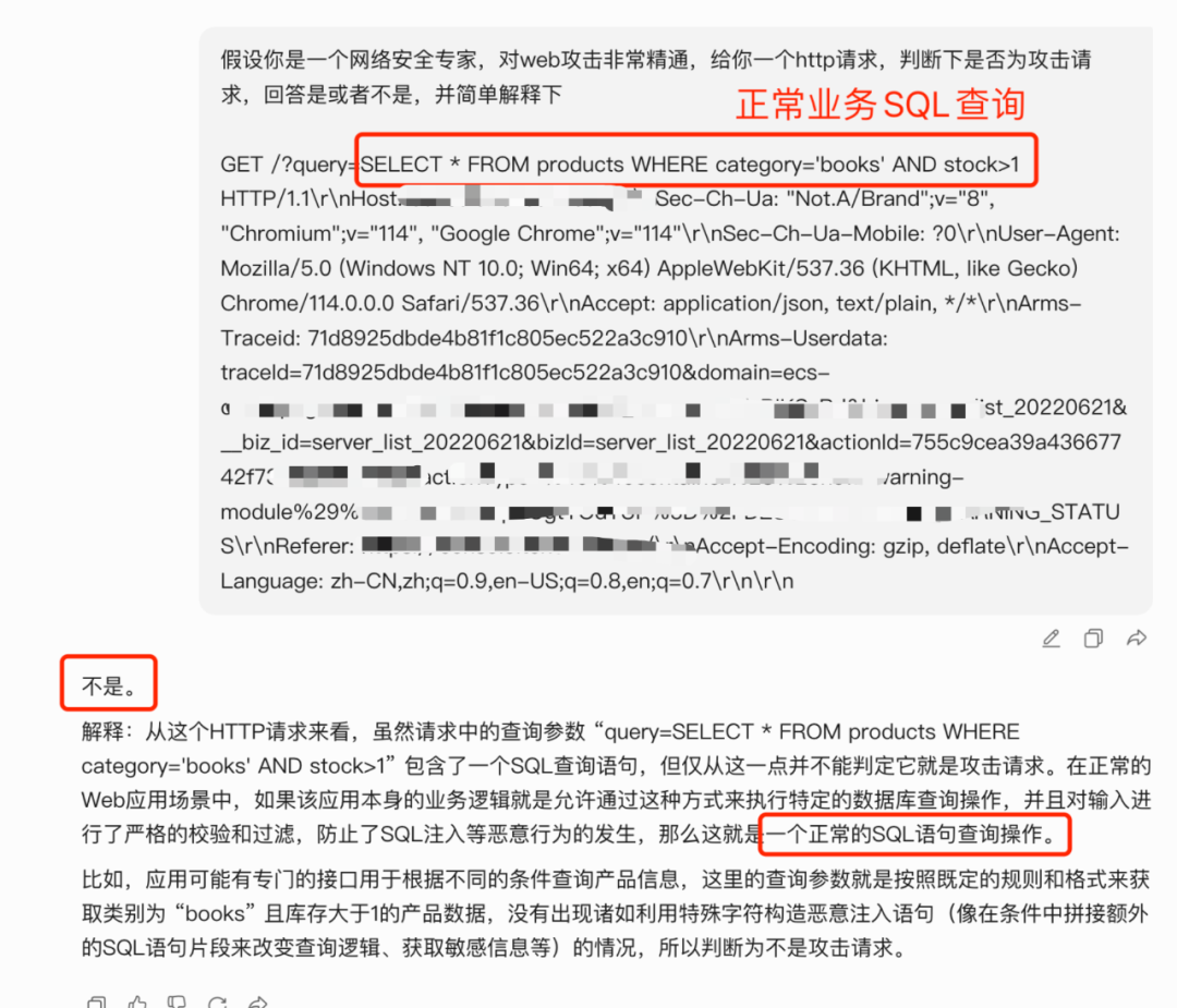 从下面两个例子就可以看到大模型具备对流量内容进行深度分析和理解的能力,实现从“语法合规性”到“意图危害性”理解的跃迁。