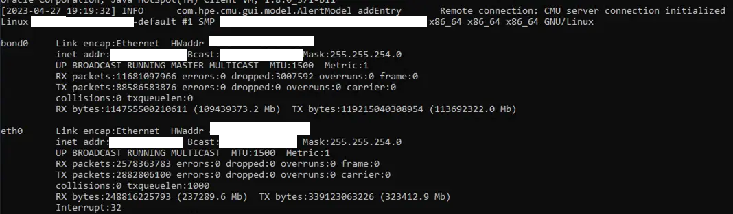 cmuResponse = ModelDispatcher.getRMIModel().executeCmdLine("ifconfig");