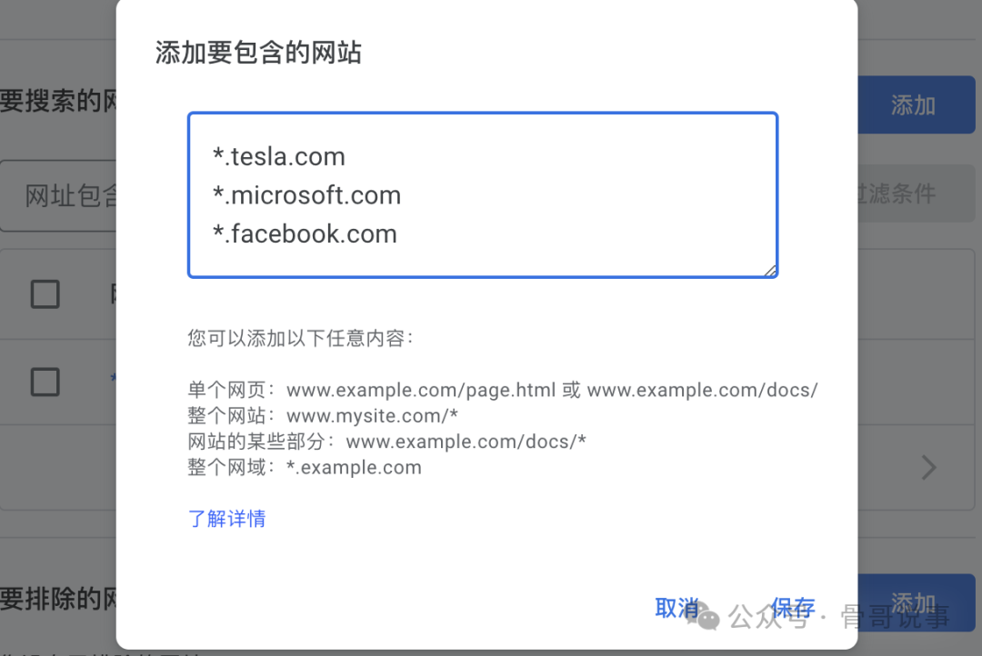 创建完毕后,可以通过点击“自定义”按钮添加更多的目标网站域名,同时,还可以在下方“要排除的网站”中,加入你要排除的一些子域目标(比如一些不在赏金范围内的子域):
