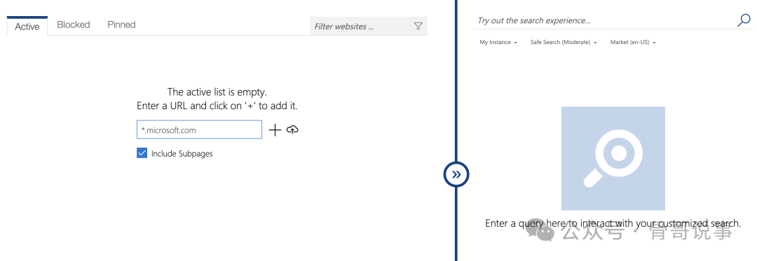 接下来我们来看看 Bing 的自定义搜索引擎,首先进入 Bing 自定义搜索,与Google不同,Bing有100个目标站点的限制,建议各位在一些“高价值”的漏洞赏金目标上使用它。