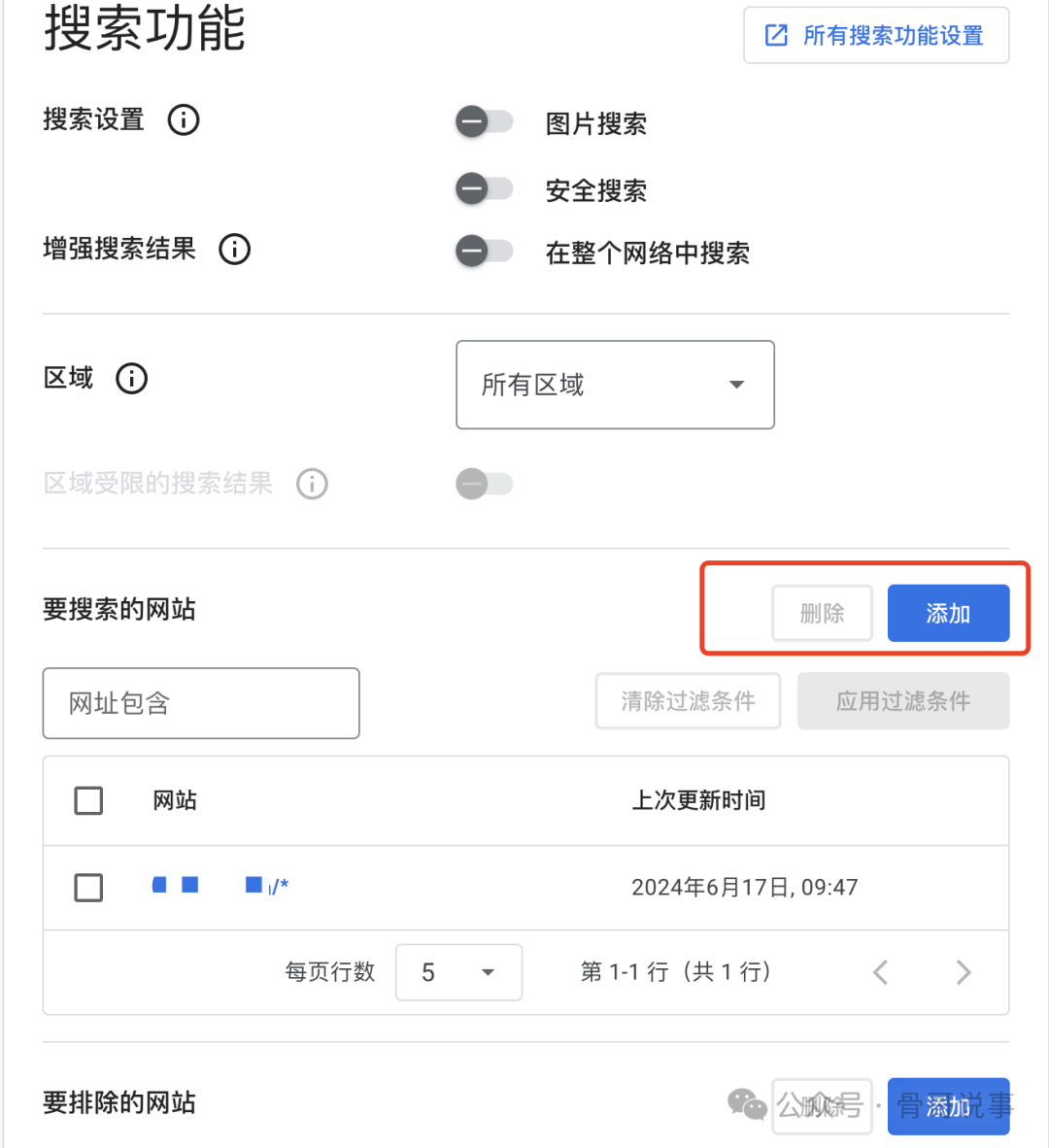 通过右侧的“+”按钮可以添加更多的站点目标(记得最多100个哈),然后就可以通过右侧搜索关键字,如”API“进行搜索了: