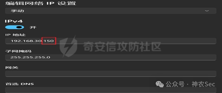 第一种办法,我们更改自己ip地址,有些汽车会限制比如AP网段的IP在0-120之间(脏网段),随机分配的也是这个区间,如果你配置为150,那么可能可以访问其他网段,突破了隔离;