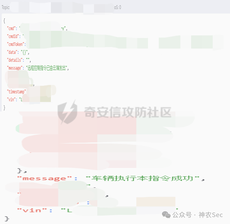 然后我切换订阅了/vin,获取到目标车辆的车主Token,找到控车包,替换token,发送控车