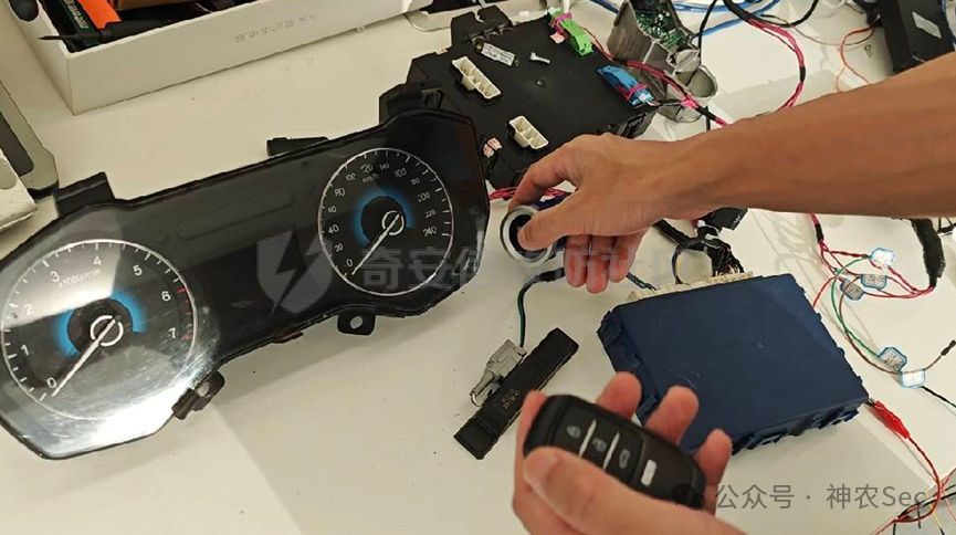 在零部件和台架上,我们会重点做一些硬件安全的研究如:调试口测试、侧信道、故障注入等;本文重点不在此,不重点讲解