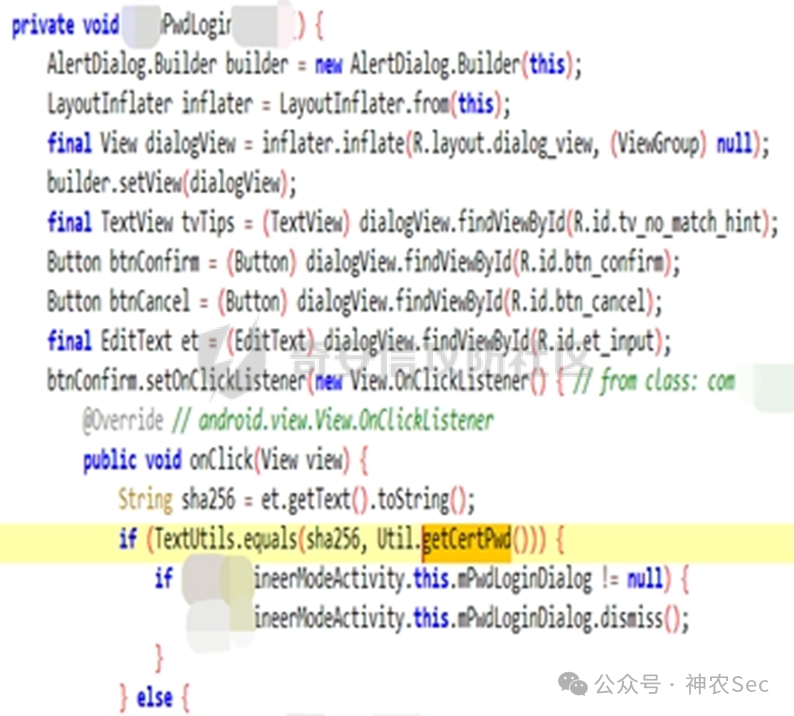 提取出来,使用apk反编译工具进行逆向,可以看到验证算法就是getCertPwd()