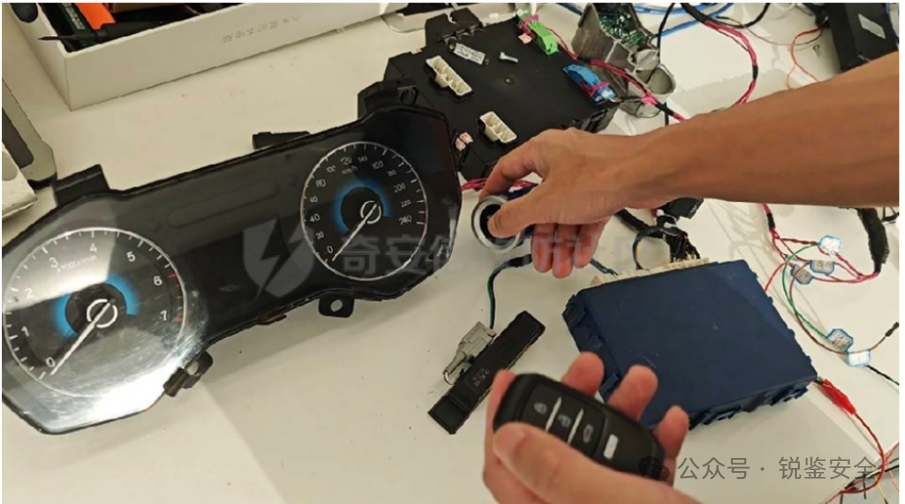 在零部件和台架上,我们会重点做一些硬件安全的研究如:调试口测试、侧信道、故障注入等;本文重点不在此,不重点讲解
