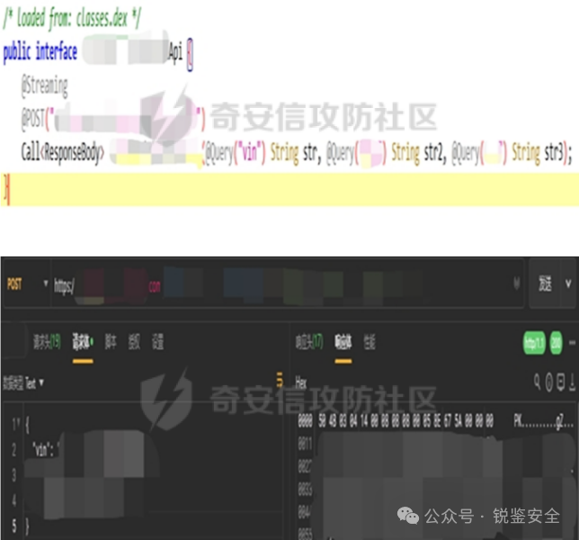 我立刻尝试登录,发现不行,其实很正常,端口是433,应该是加了TLS,所以还需要证书、客户端证书、客户端私钥才能登录,然后我继续逆向,发现有个接口,可以获取到证书,下图响应体是个压缩包