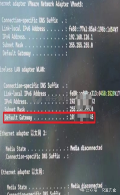 连接车机的热点后,查看自己WIFI网卡的网关,一般这个网关就是Tbox的地址