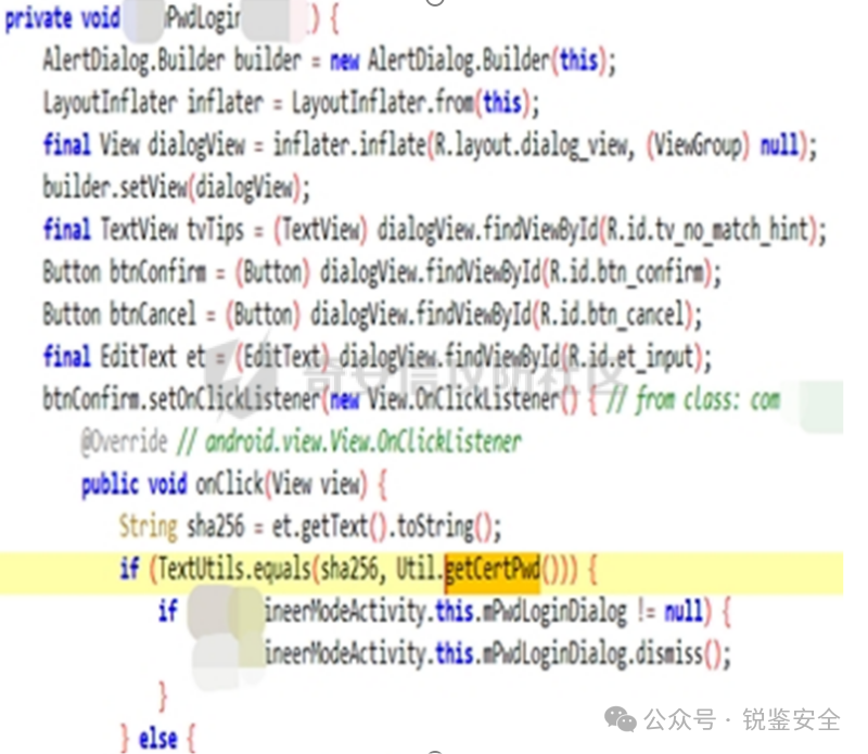 提取出来,使用apk反编译工具进行逆向,可以看到验证算法就是getCertPwd()