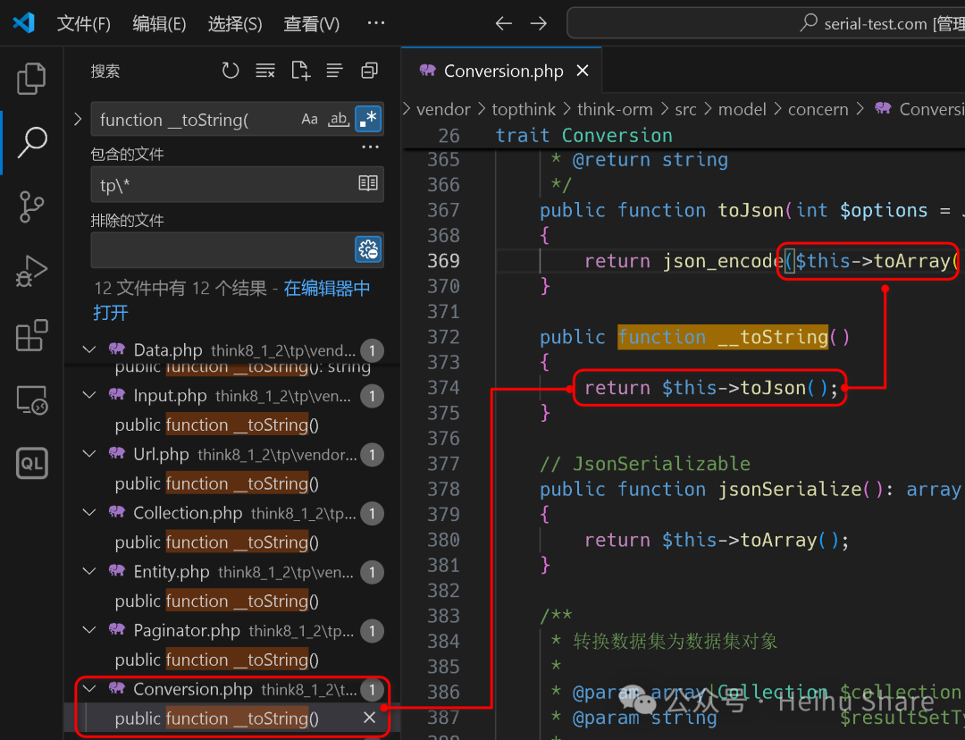 魔术方法, 并且根据调用链会调用到$this->toArray