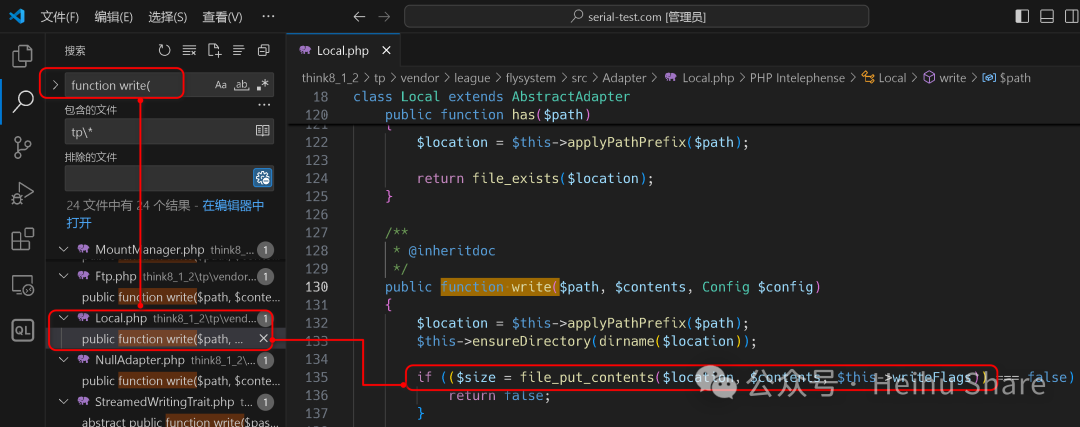 方法名就像是写入文件操作, 所以这里全局搜索write